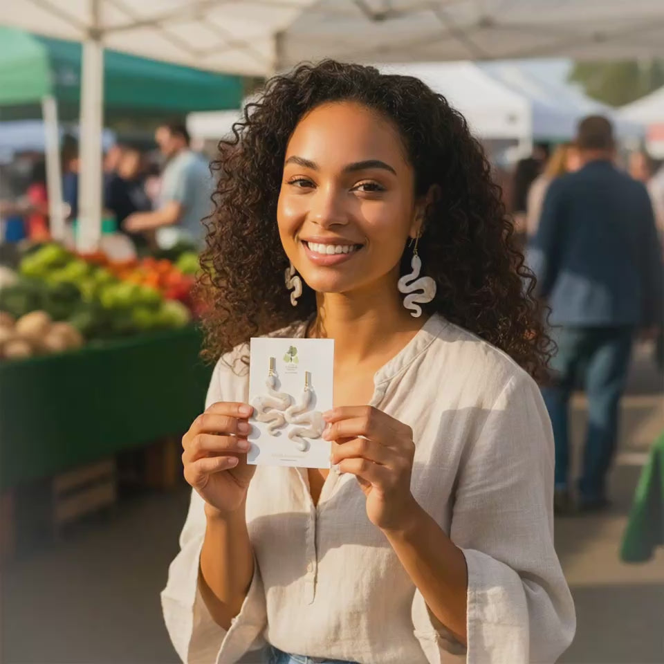 SEO Optimized Tags: snake earrings, handmade serpent earrings, polymer clay statement earrings, unique snake jewelry, bold statement earrings, handcrafted snake earrings, hypoallergenic jewelry, boho serpent earrings, gold snake earrings, edgy statement earrings