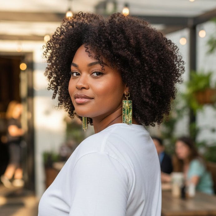 These green and gold earrings include geometric drops, rectangles, and earthy dangles—perfect for those who want to stand out while staying grounded. Whether you’re dressing up or going natural, these artisan-made earrings offer color, comfort, and a unique story in every pair.